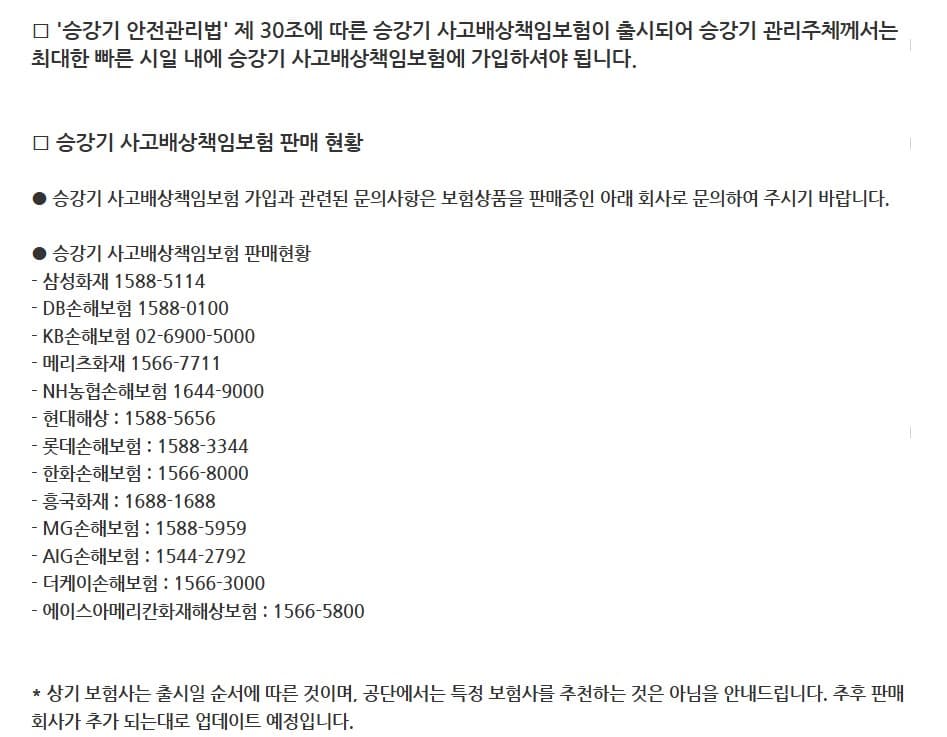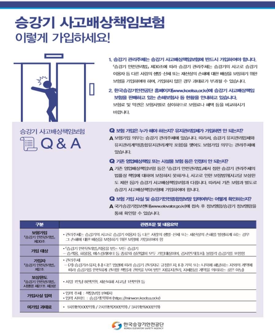 승강기 사고배상 책임보험 출시 안내