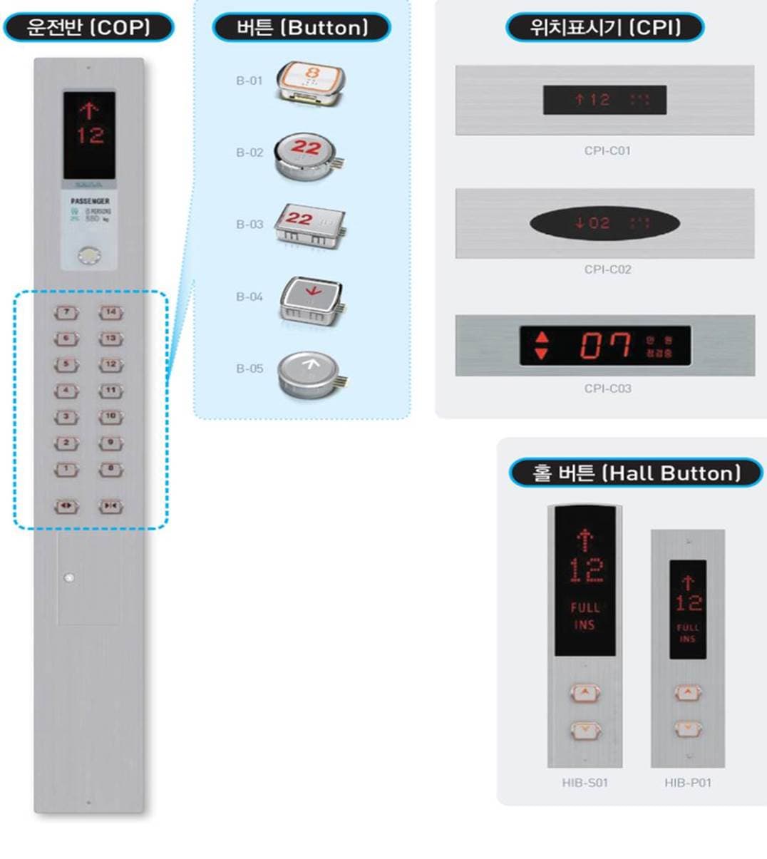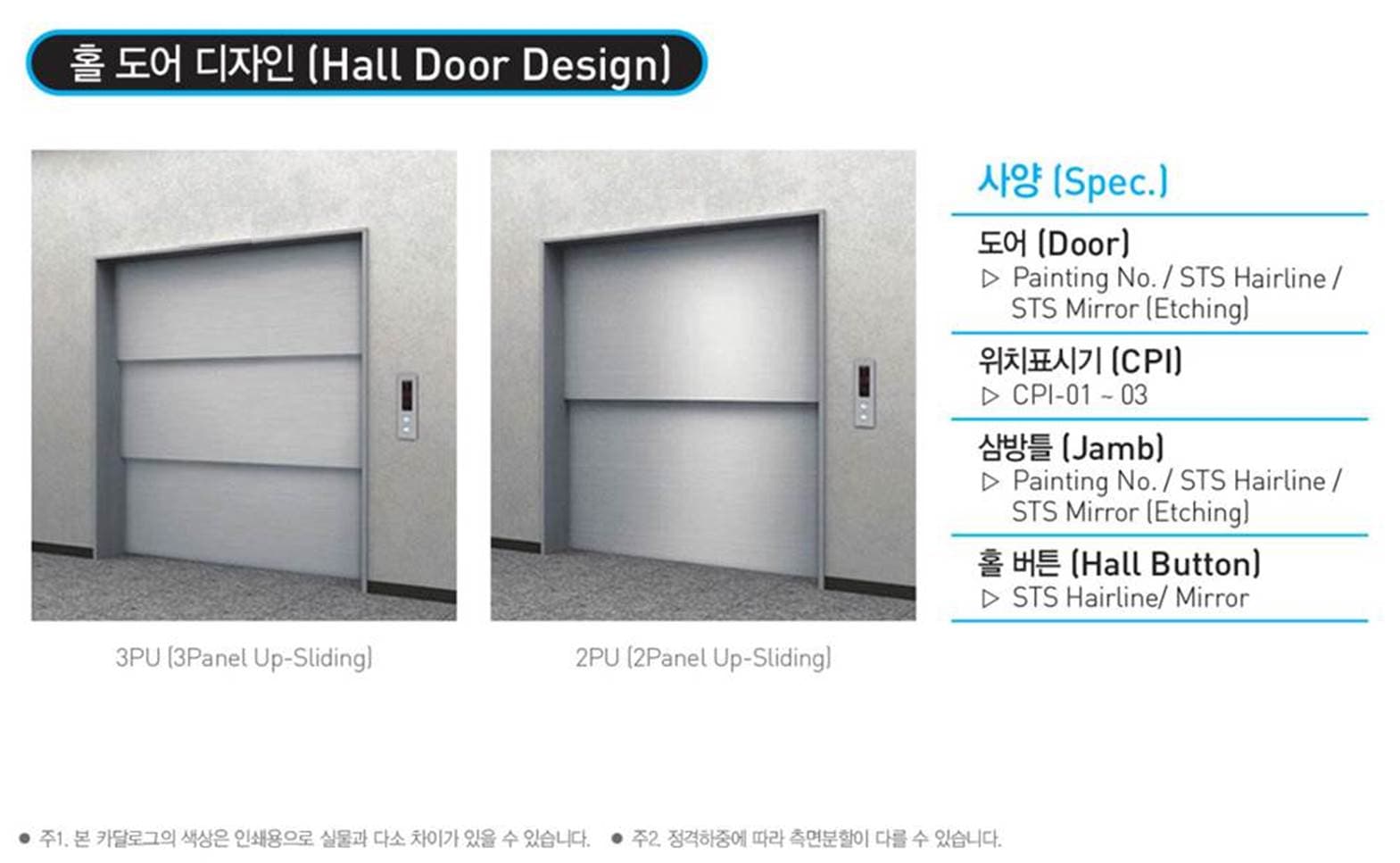 카도어, 홀도어, 표시기 운전조작반 및 버튼 디자인 (Car Door, Hall Door, Indicator, COP & Button Design)