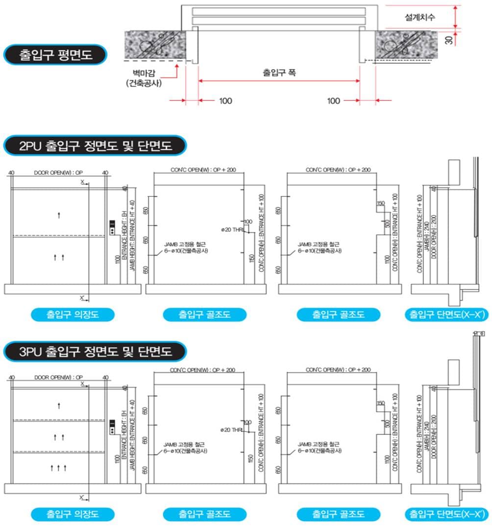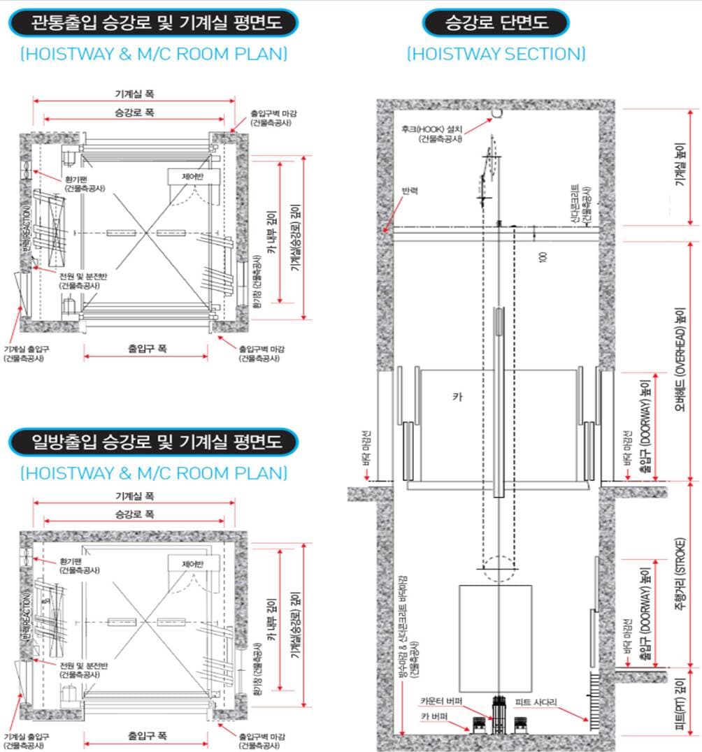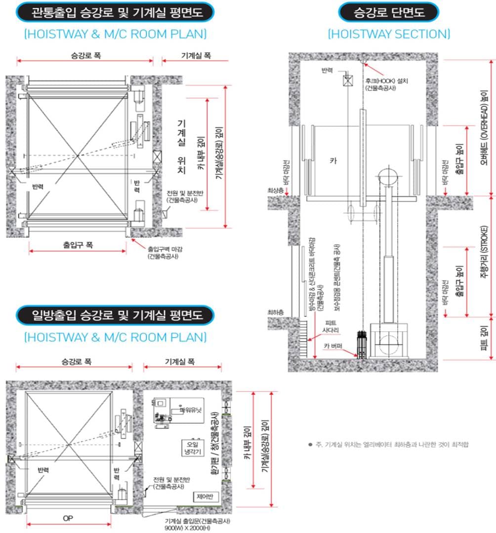자동차용 엘리베이터 표준제원표 및 배치도(Freight Elevator Table & Layout for Car)
